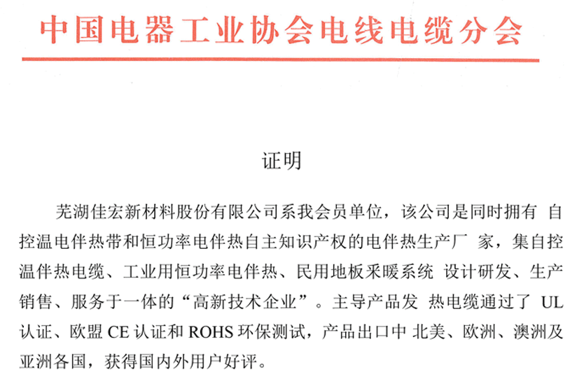 據(jù)蕪湖佳宏新材料股份有限公司提供的“電伴熱國(guó)內(nèi)市場(chǎng)份 額分析"(基于銷(xiāo)售額)以及由華普天健會(huì)計(jì)師事務(wù)所(容誠(chéng)會(huì)計(jì)師 事務(wù)所)出具的近三年該公司審計(jì)報(bào)告,結(jié)合我會(huì)對(duì)相關(guān)行業(yè)情況的了解,我會(huì)釆信的佳宏新材料公司主導(dǎo)產(chǎn)品電伴熱的市場(chǎng)占有率排 名為:蕪湖佳宏新材料股份有限公司近三年主導(dǎo)產(chǎn)品電伴熱在國(guó)內(nèi) 細(xì)分市場(chǎng)占有率排名前三位。