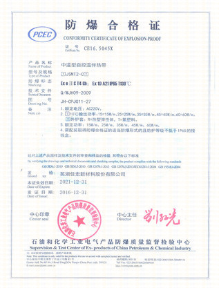 石油化工行業(yè)自限溫伴熱帶防爆合格證